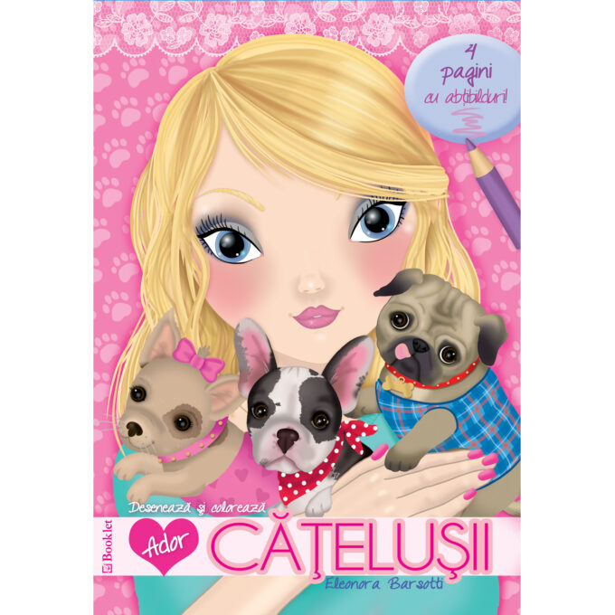 Ador cățelușii este o carte ilustrată pentru copii, ce conține jocuri interesante, personaje hazlii și activități care să le dezvolte celor mici imaginația, creativitatea și aptitudinile de joc și de cunoaștere, cei mici având la dispoziție numeroase desene de colorat și 4 pagini cu abțibilduri.